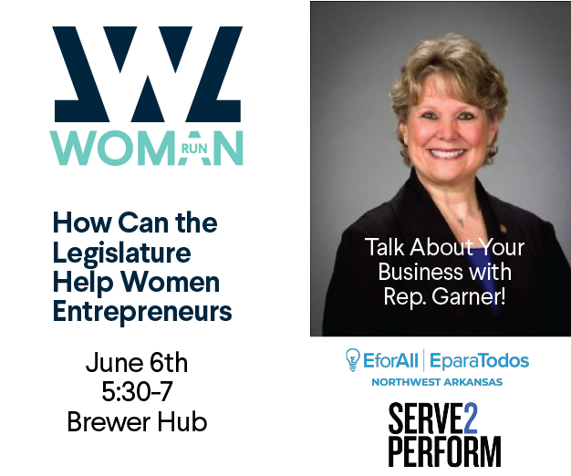 Join us for a listening session with Representative Denise Garner to talk about how the legislature can help women entrepreneurs. Co-hosted with E for All and Serve2Perform, this is your opportunity to tell Rep. Garner your concerns and how you think the legislature can help your business.