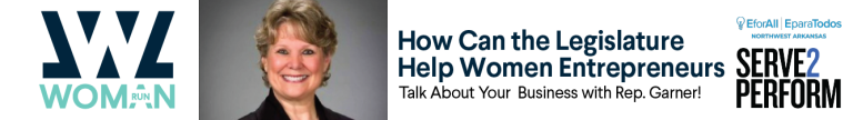 Join us for a listening session with Representative Denise Garner to talk about how the legislature can help women entrepreneurs. Co-hosted with E for All and Serve2Perform, this is your opportunity to tell Rep. Garner your concerns and how you think the legislature can help your business.